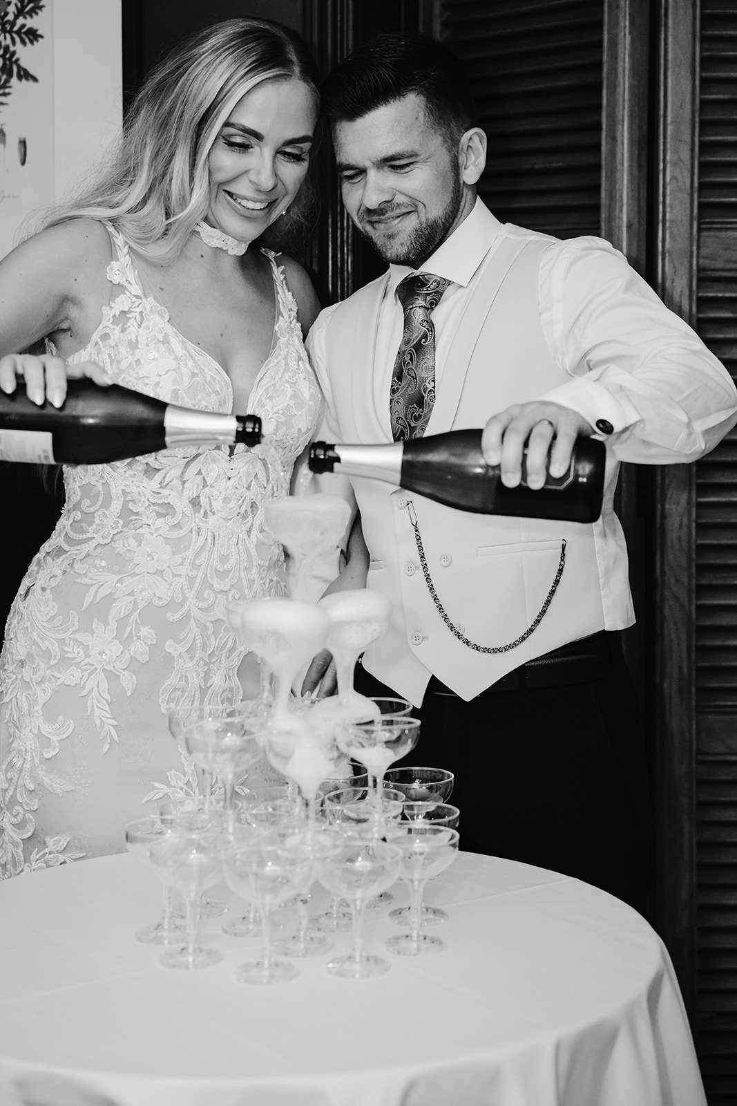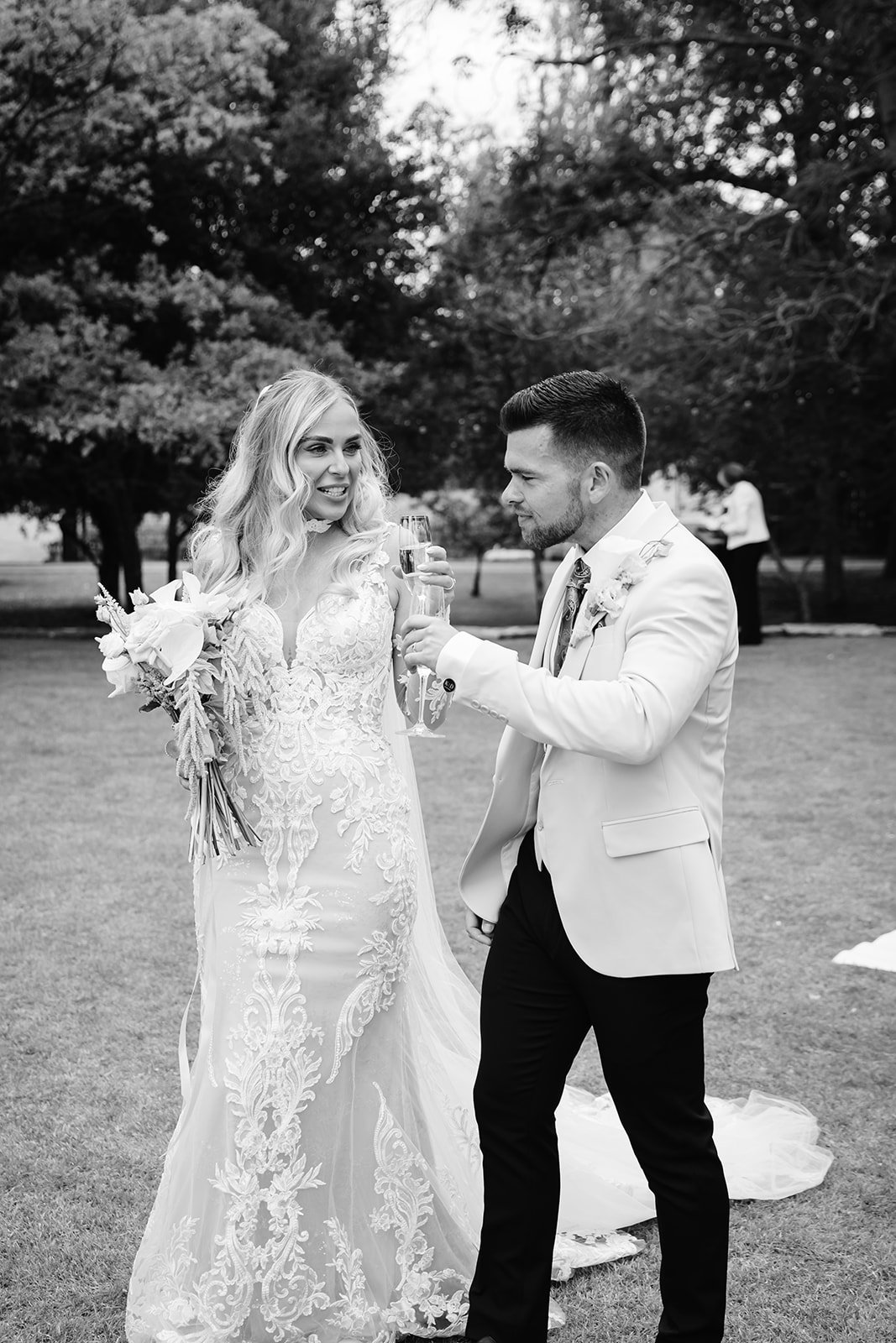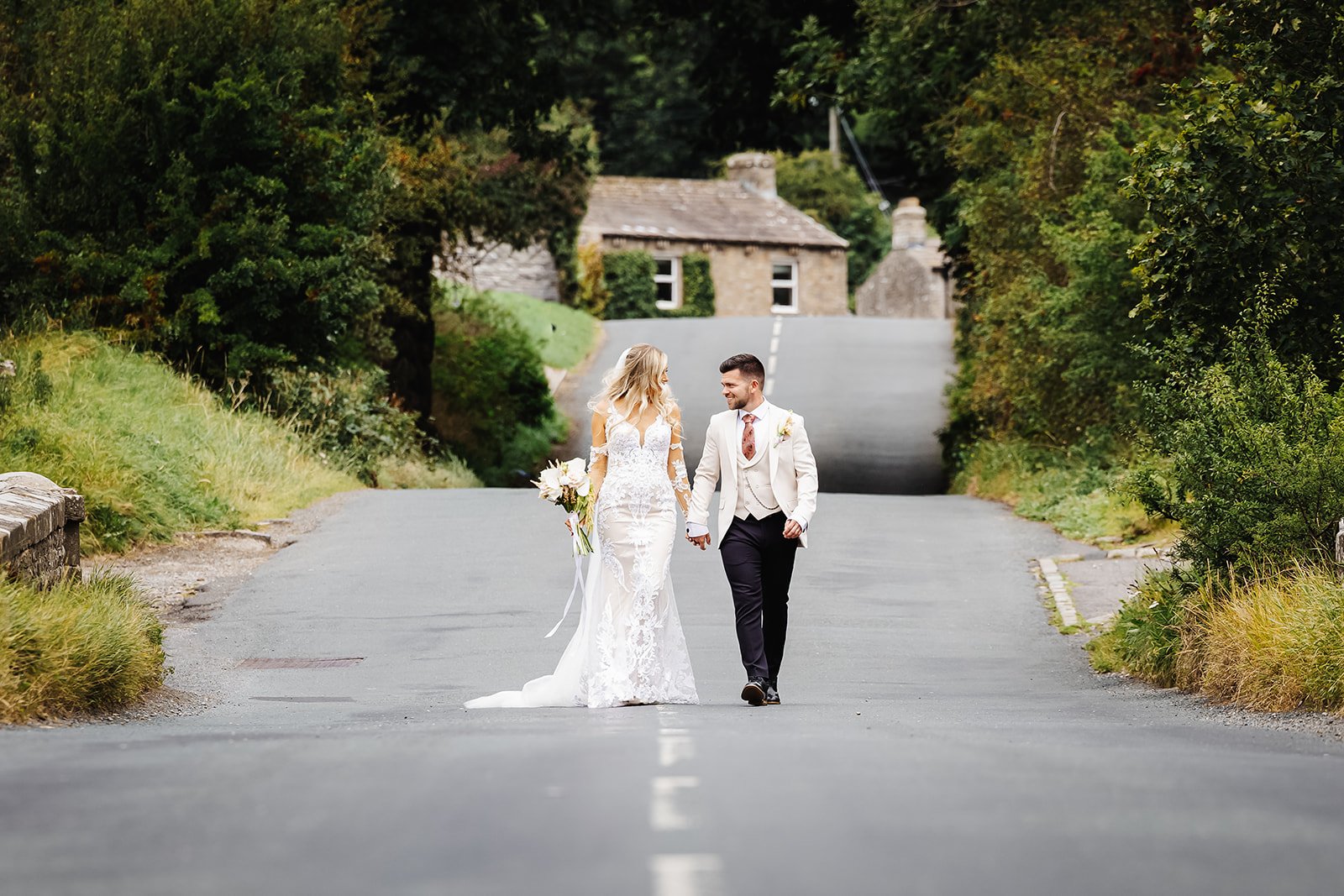 After the confetti and hugs, guests enjoyed drinks on the lawn, with views stretching across the Yorkshire Dales. The weather couldn’t have been better — soft sunlight, a gentle breeze, and that unmistakable August glow, the rain held off just long enough for us to finish our couples photos.