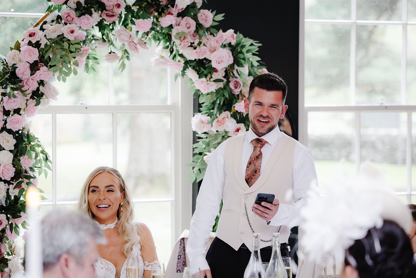 As the sun dipped behind the hills, the celebrations moved inside. The speeches were heartfelt and hilarious in equal measure, followed by a lively first dance that set the tone for a brilliant night ahead. The dancefloor filled quickly and stayed that way — a true reflection of how much love surrounded this couple.