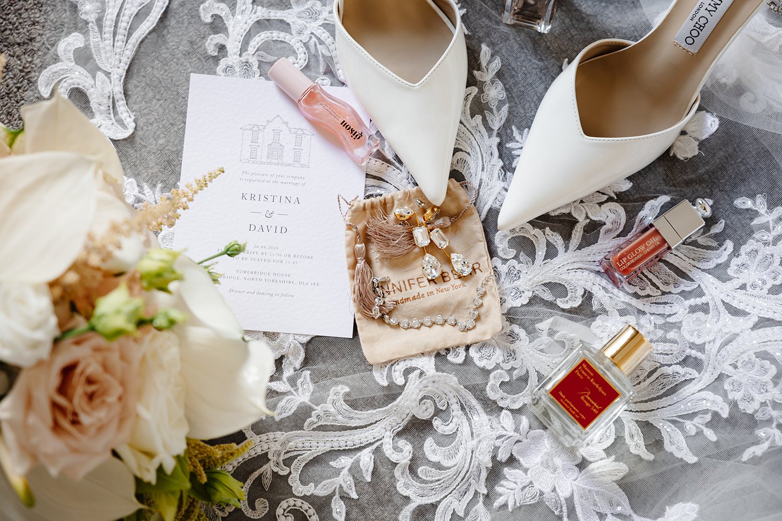 The day began with the sun streaming through the windows of Yorebridge House, one of North Yorkshire’s most elegant boutique venues. Kristina got ready in one of the charming suites.