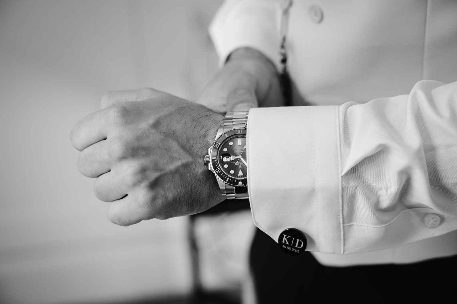 Meanwhile, David and his batsman (son) enjoyed a relaxed start downstairs — a few nervous laughs, a toast to the day ahead, and those final touches before guests began to arrive.