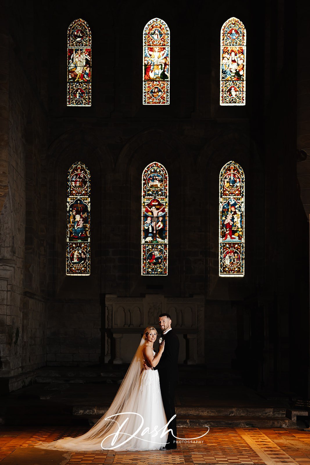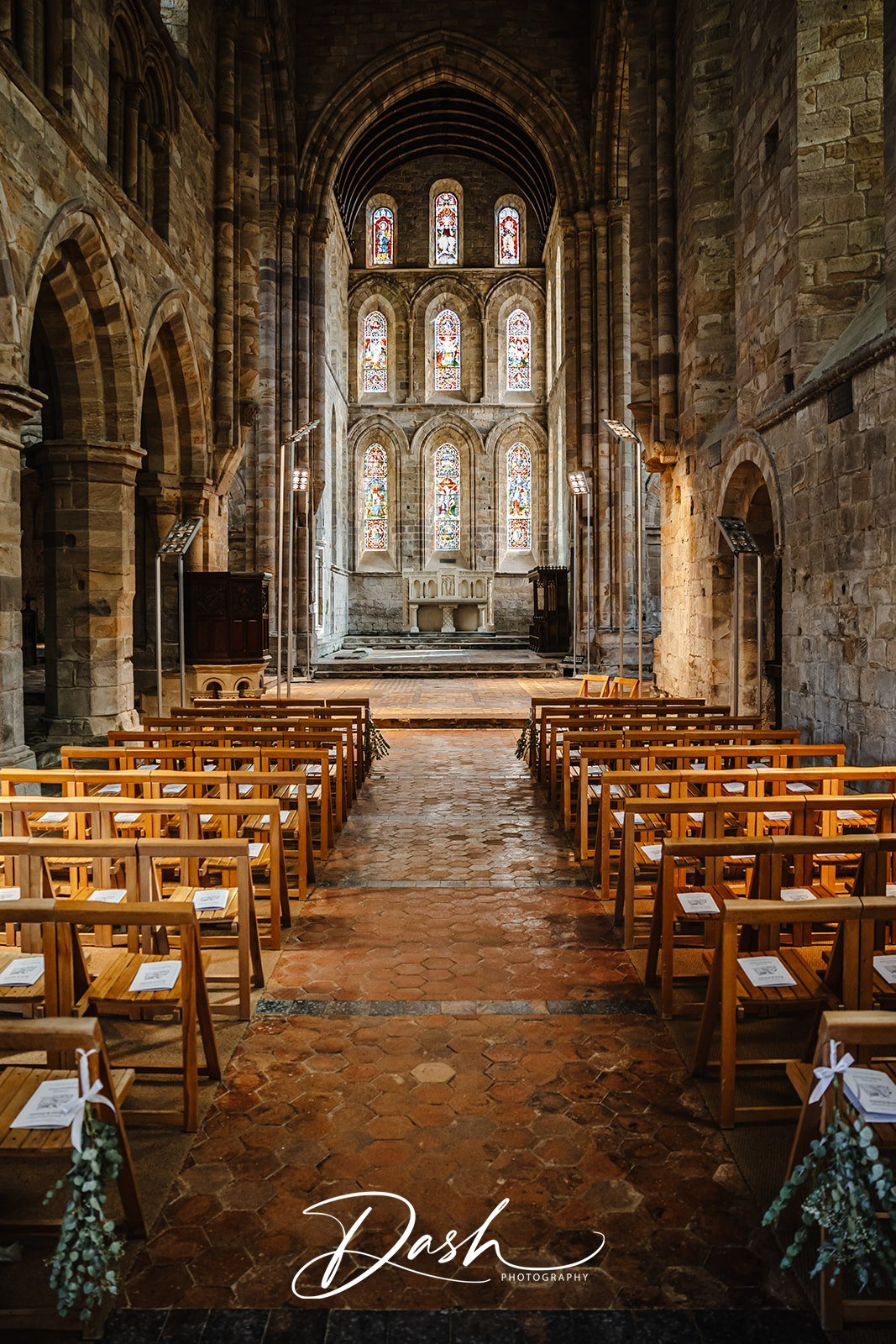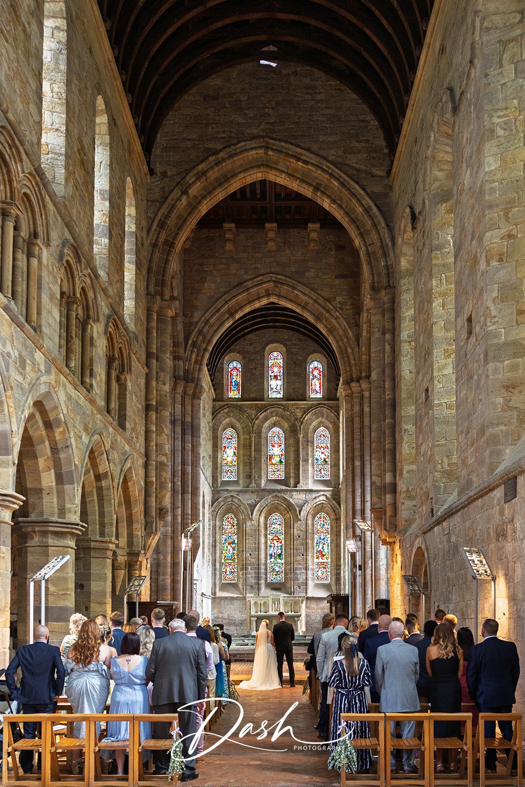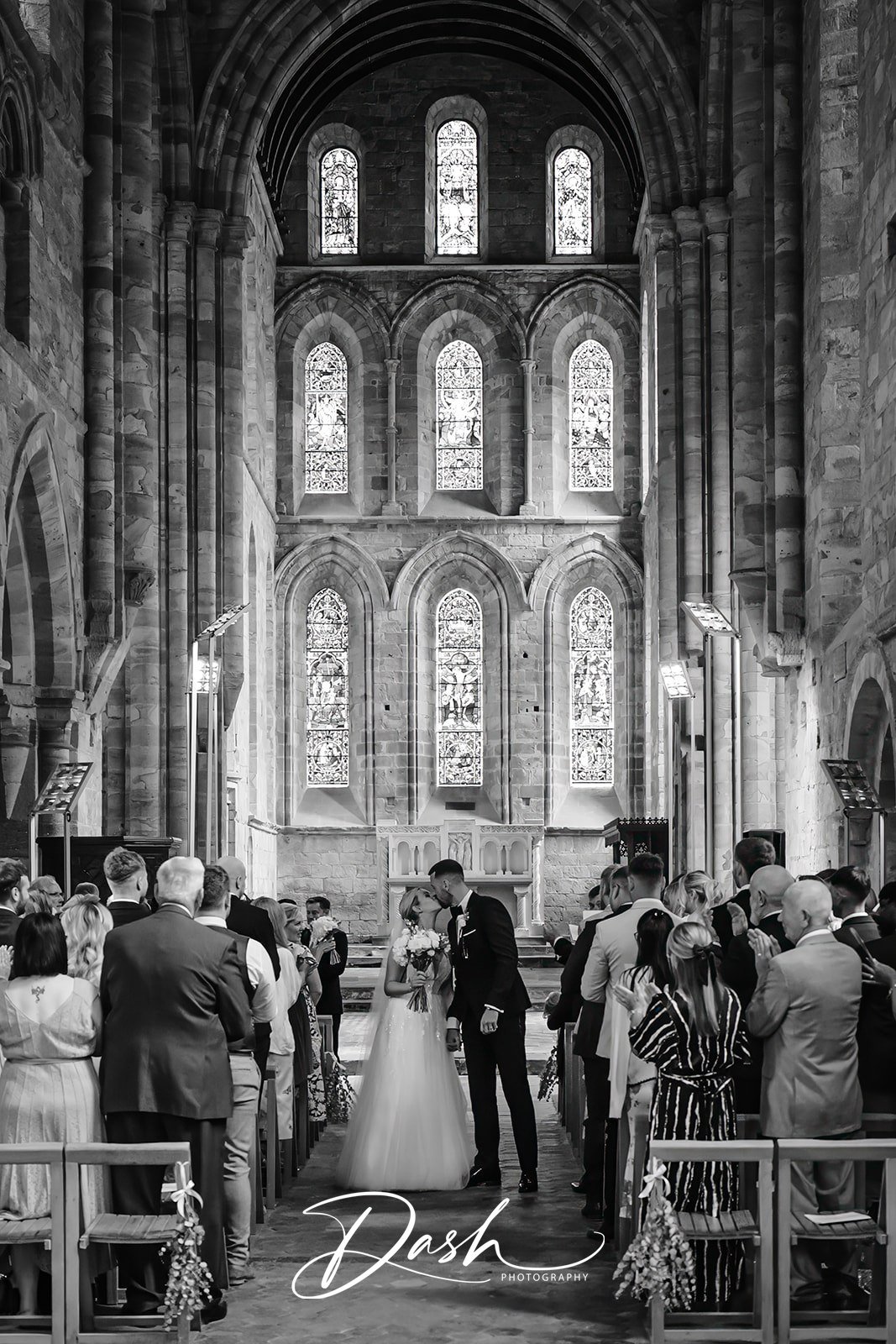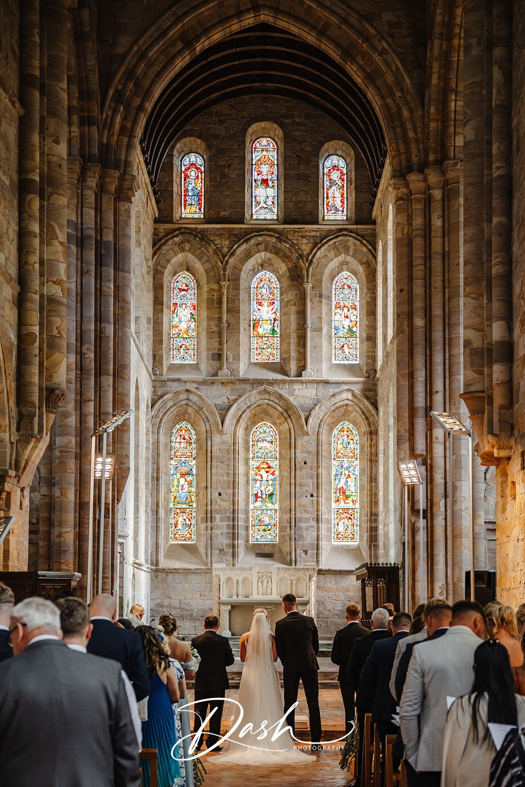 Brinkburn Priory is one of the most atmospheric ceremony spaces in the North East. With its high stone arches and soft natural light, it creates an almost cinematic feel. As the music began and Natalie entered the Priory, all conversation hushed. The moment she reached Ryan at the altar, it was pure emotion — simple, genuine, and full of love.