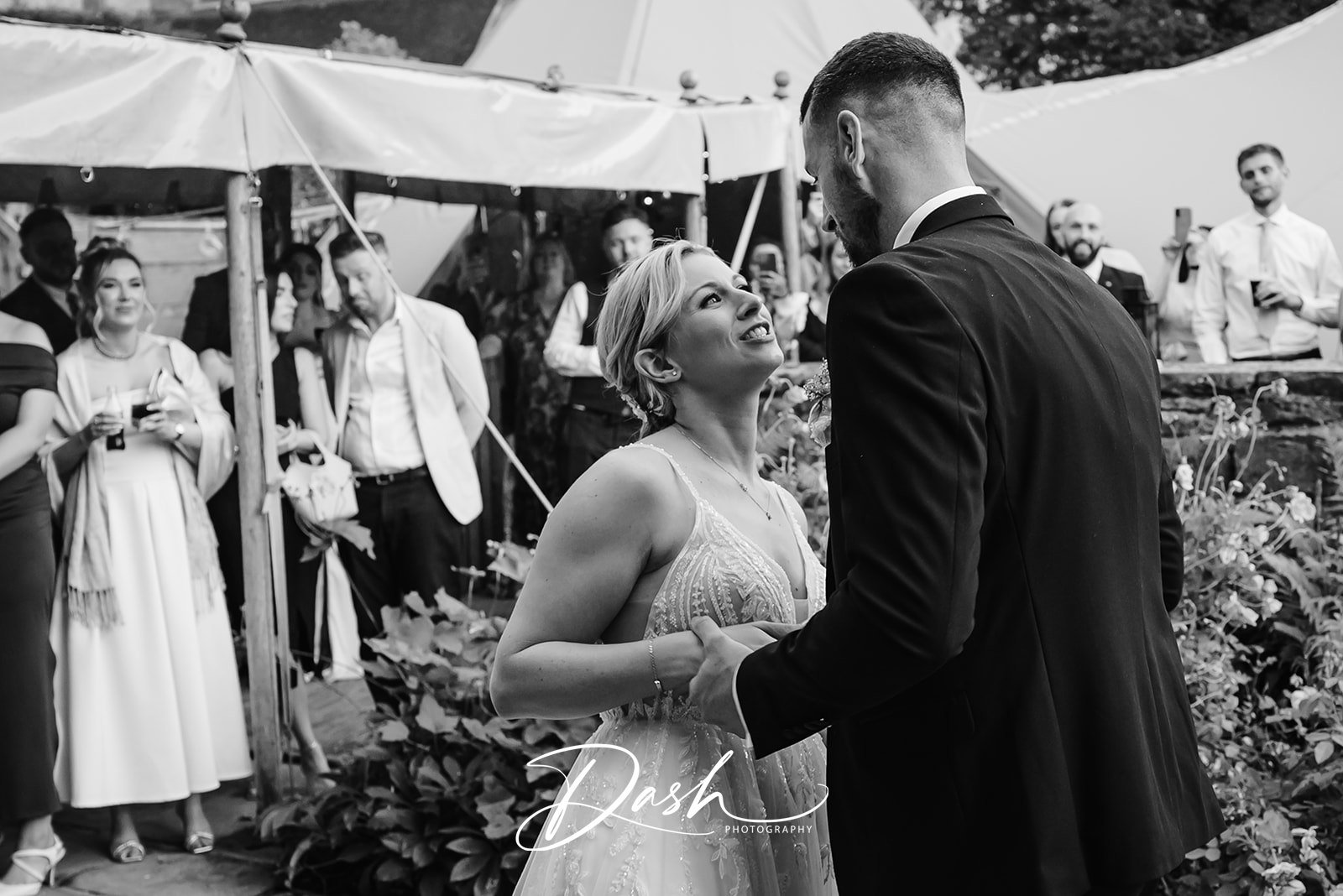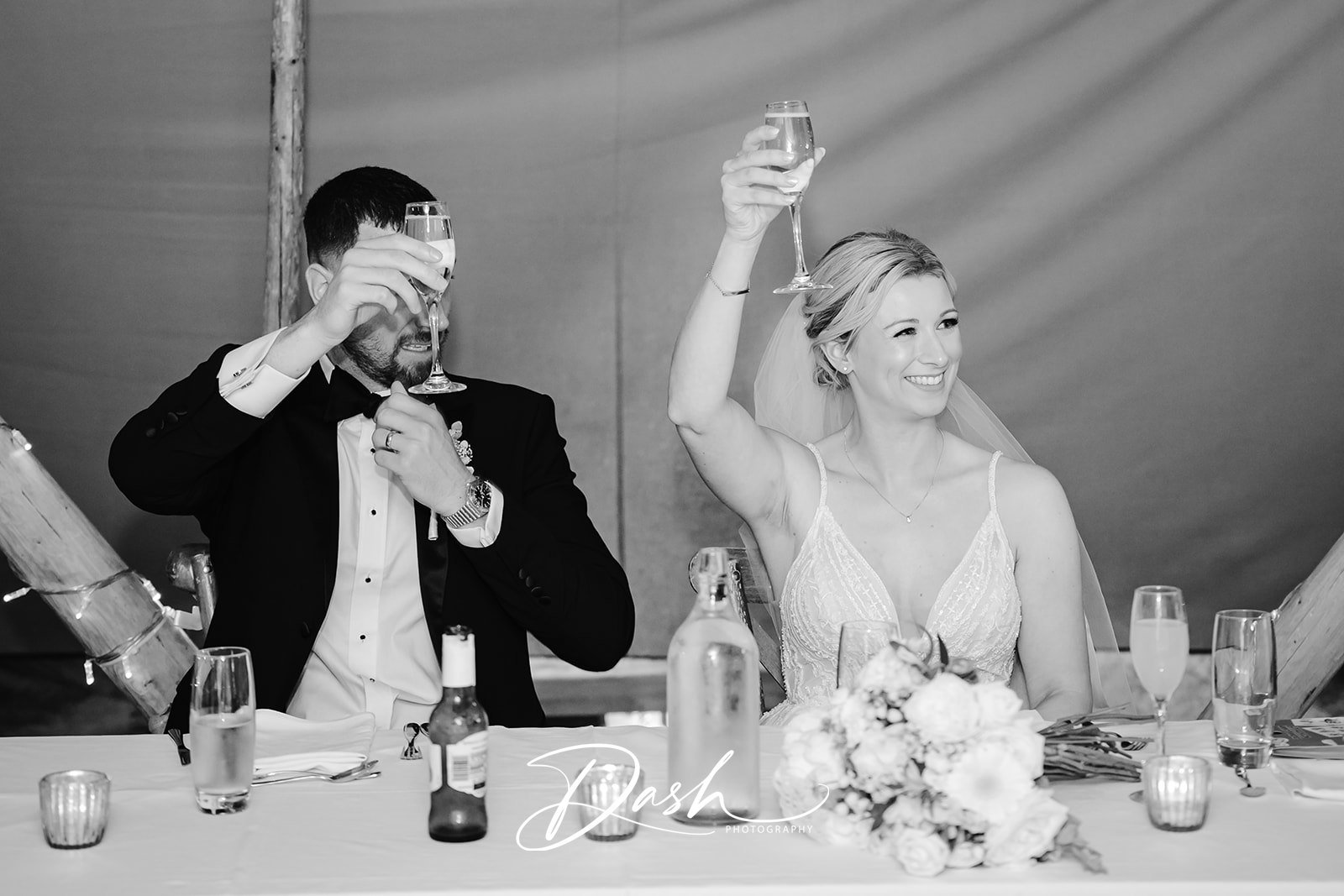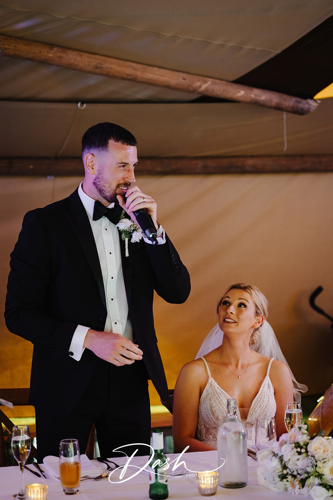 As the sun dipped, the tipis came alive with fairy lights, great food, and live music. The speeches were the perfect mix of humour and heartfelt emotion, followed by a packed dancefloor that never seemed to empty.
