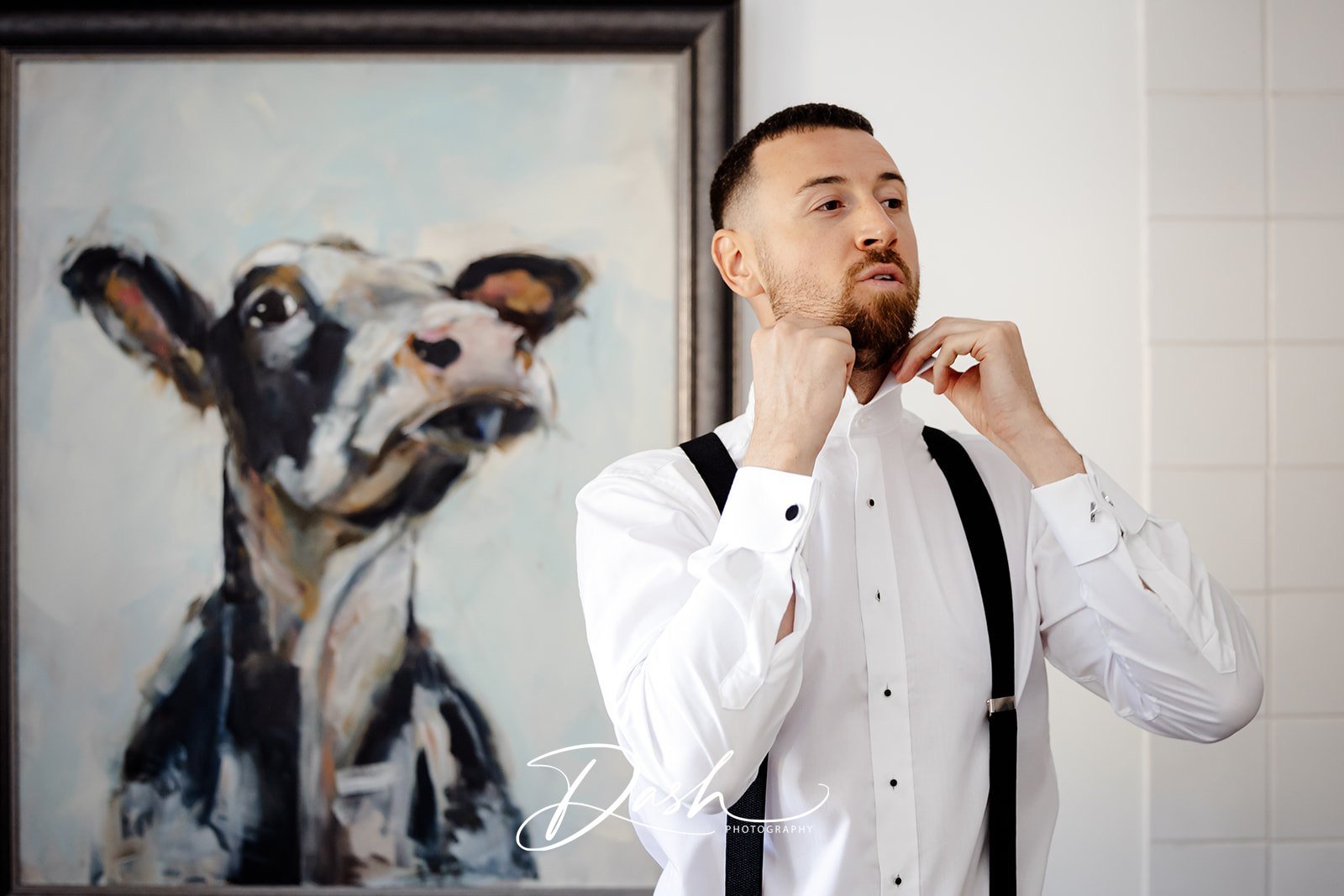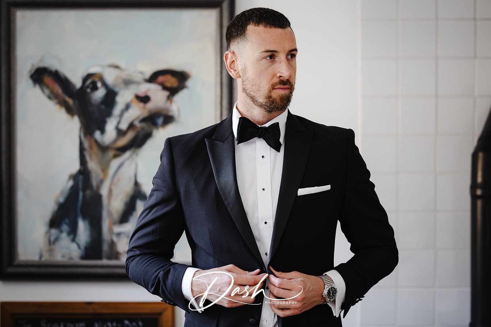Meanwhile, Ryan and his groomsmen got ready nearby, sharing jokes and a few deep breaths before the big moment. As a Northumberland wedding photographer, mornings like these are a dream to capture — honest, natural, and full of anticipation.