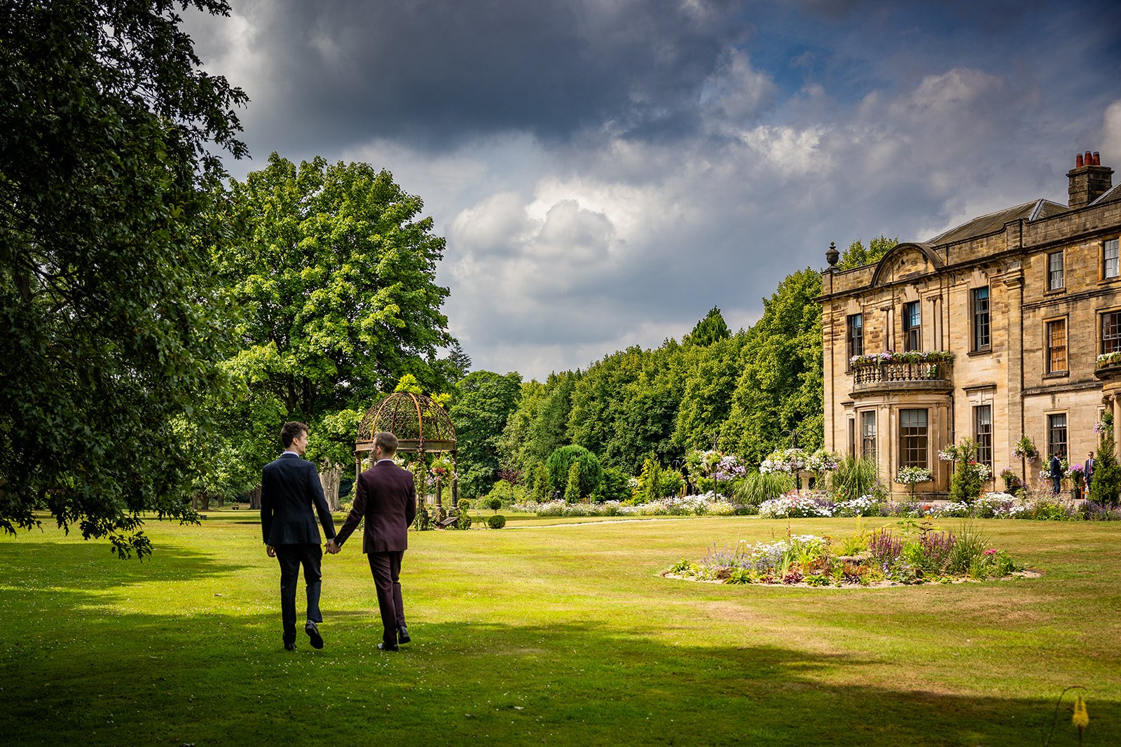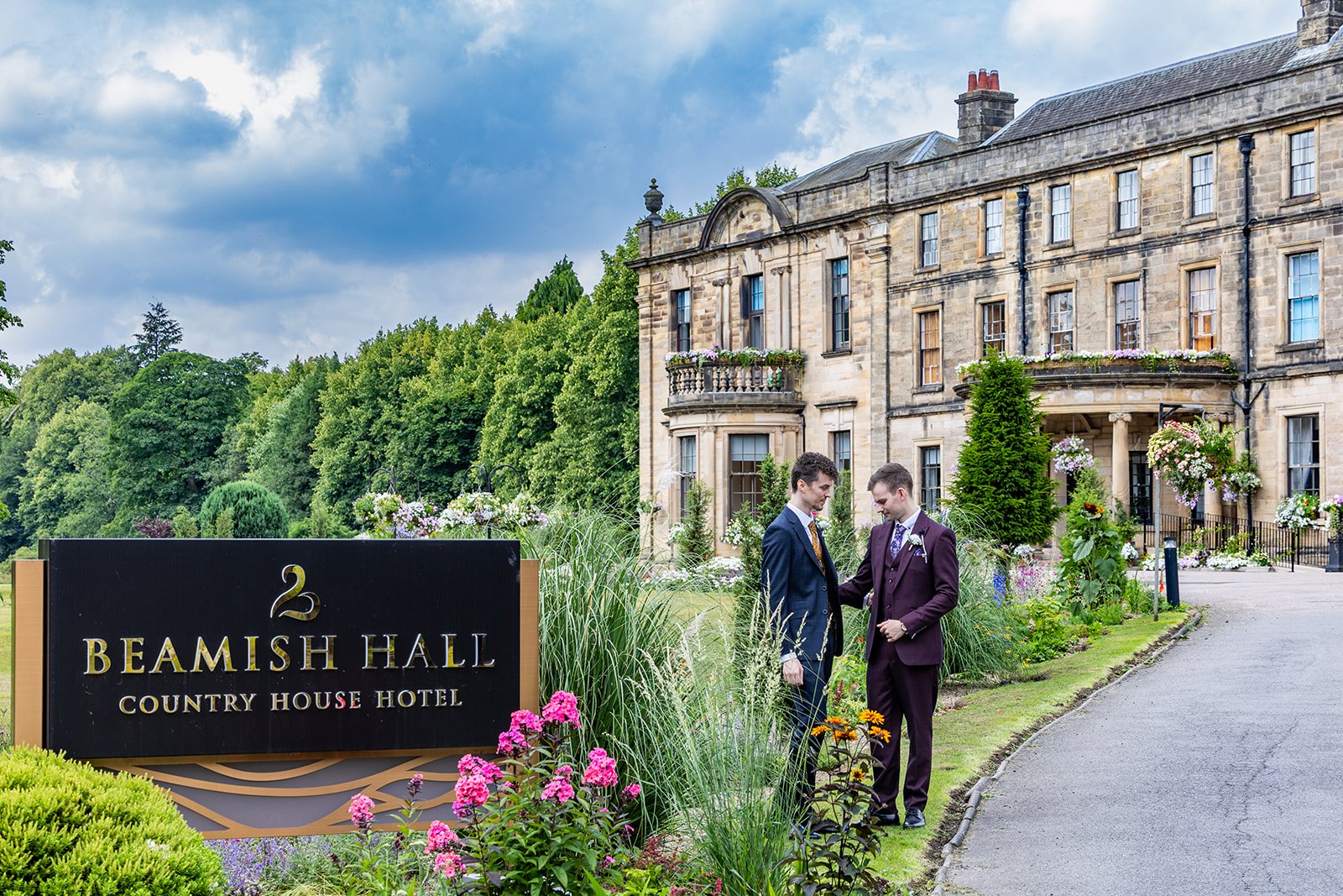Beamish Hall, one of the most sought-after wedding venues in County Durham, provided a stunning backdrop for Reece & Wyatt’s unforgettable wedding day. Nestled in enchanting woodland and steeped in historic charm, this elegant country house created the perfect romantic atmosphere from the very start. The couple exchanged vows in the breathtaking Shafto Hall, a grand room rich with period features and timeless sophistication. Following the ceremony, guests enjoyed a relaxed drinks reception in the glorious sunshine, surrounded by Beamish Hall’s magnificent landscaped grounds—ideal for capturing stunning wedding photographs.