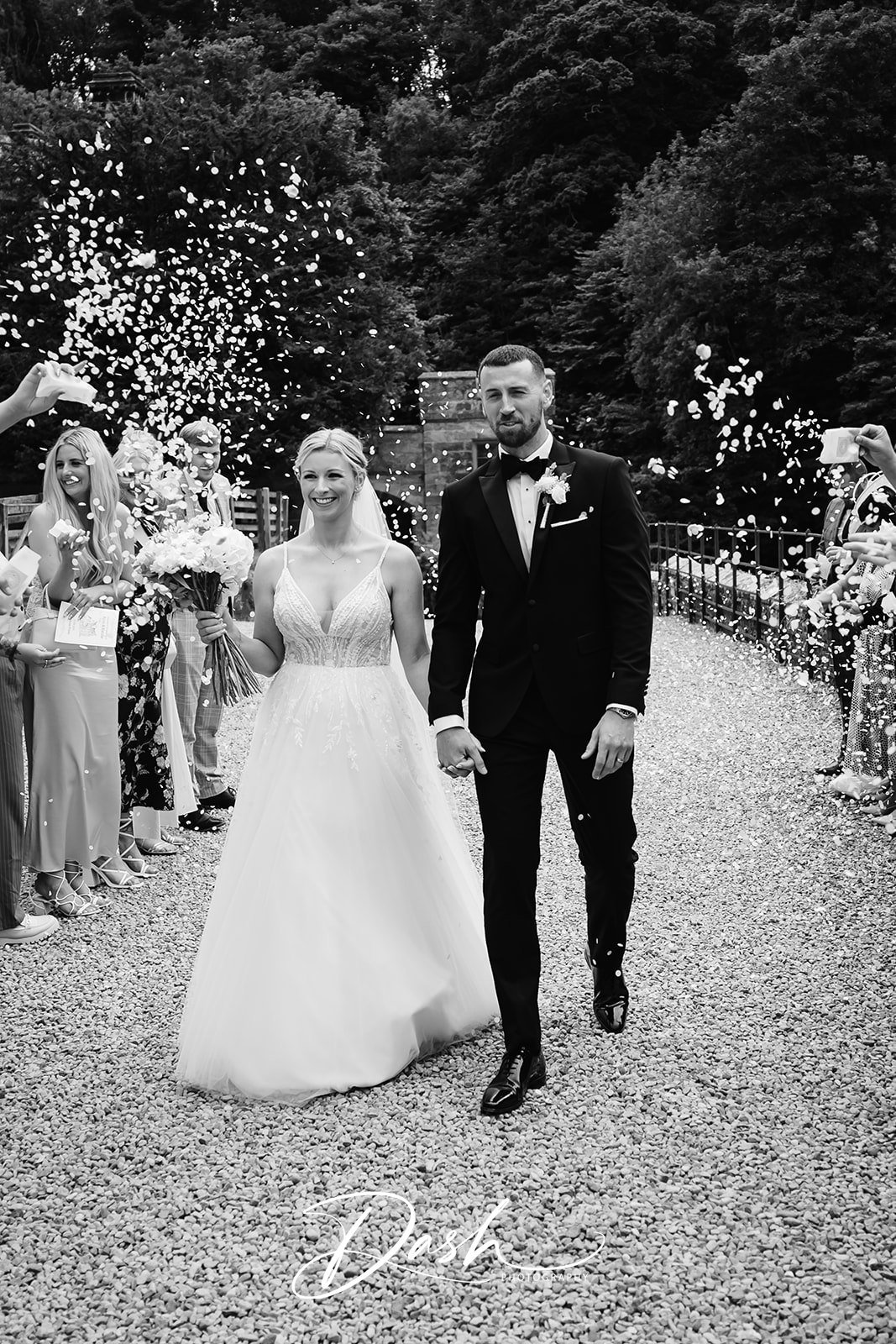 After the ceremony, celebrations continue in the surrounding grounds and reception spaces. The gardens and woodland areas offer plenty of opportunities for relaxed, natural photographs without needing to travel away from the venue.